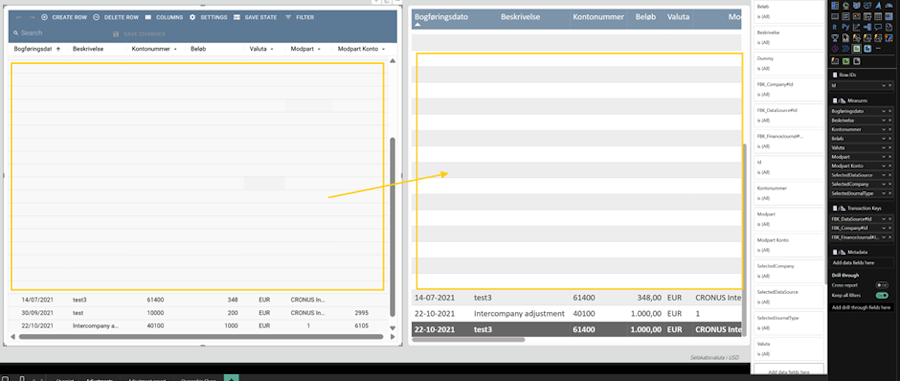 The visual on the left is accoMASTERDATA and on the right is the PowerBI native tabel visual.