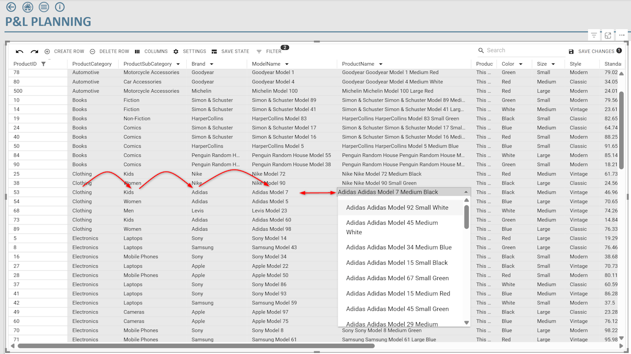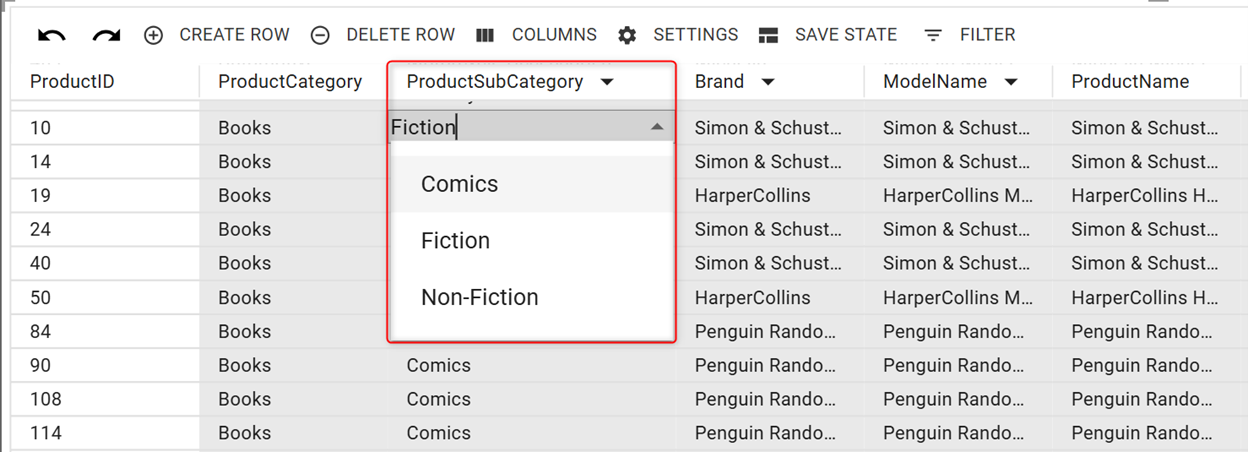 As shown in the example image, there will be three subcategories when books is selected for ProductCategory.