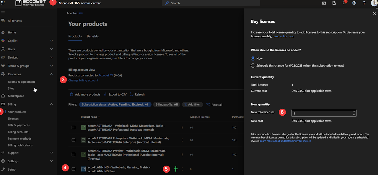 Navigate to the licenses section in Microsoft 365 Admin Center: